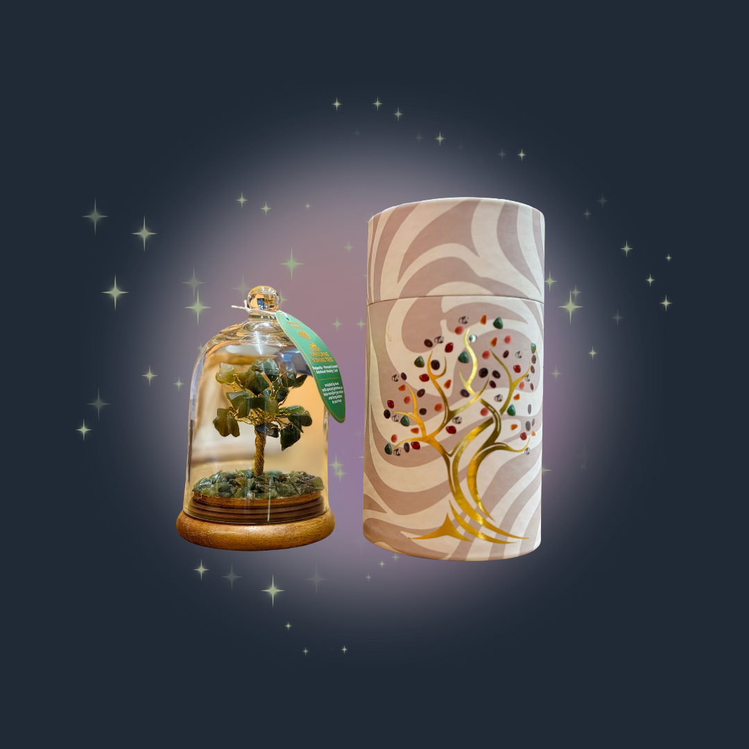 Encased in an elegant glass dome, this gemstone tree is a perfect combination of spiritual significance and aesthetic charm. Green Aventurine